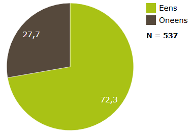 Bijna vier op de tien (38%) zijn het echter oneens met de stelling. Dit zijn vaker mannen (45% vs. 32%). Ook geldt dat hoe hoger men opgeleid is, hoe vaker men het niet eens is met de stelling (24% laagopgeleid tot 52% hoogopgeleid). Uit de open antwoorden blijkt dat men hier vooral nuchter naar kijkt; ‘Zo werkt politiek’ en ‘Als het werkt, dan werkt het’.